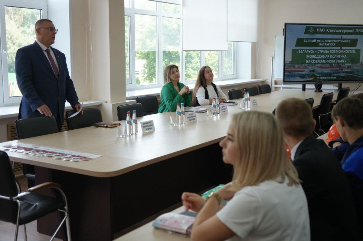 Тема встречи в рамках единого дня информирования — «Беларусь — страна возможностей. Молодежная политика на современном этапе». Речь шла в том числе о созданных государством условиях для всестороннего развития молодого поколения. Сегодня делается все необходимое для создания условий активного и эффективного включения молодежи в социально-экономическую жизнь района. Большинство районных молодежных проектов направлено на развитие творческих инициатив, поддержку молодых семей, молодых специалистов, формирование здорового образа жизни и здоровой социальной активности. Рассказали участникам встречи о достижениях молодежи района в образовании, спорте, творчестве.