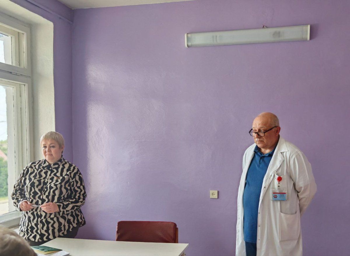 Продолжая работать в г.п.Паричи, Елена Лаптева вместе с председателем Паричского сельского исполнительного комитета Александром Цалко провели встречу с трудовым коллективом Паричской больницы.