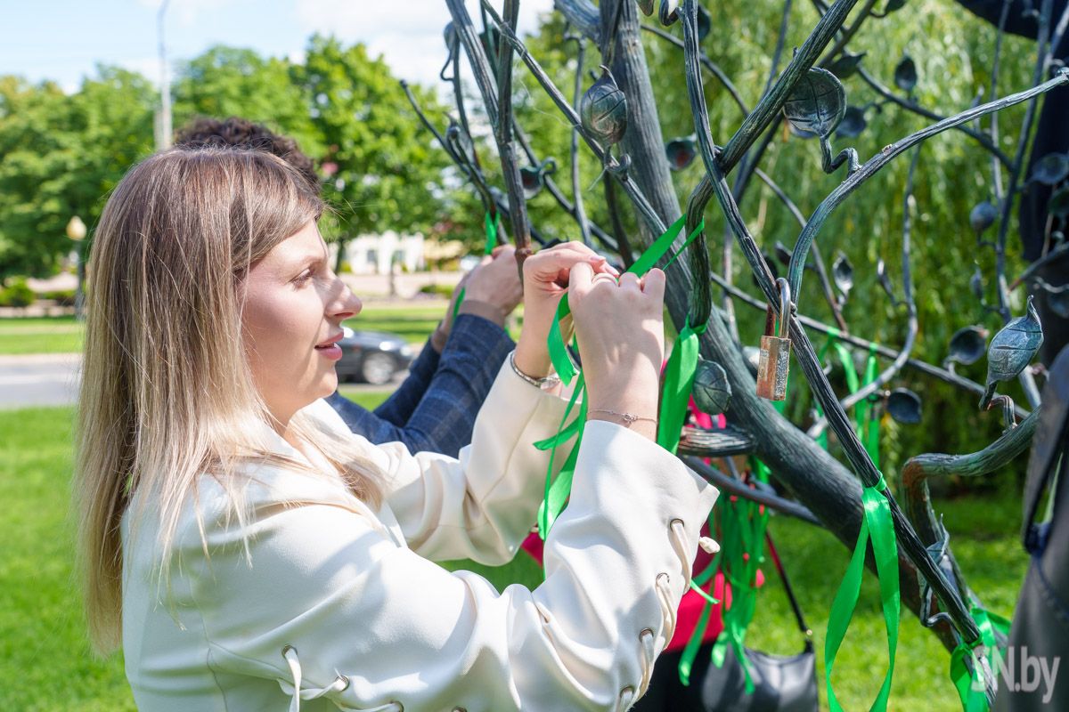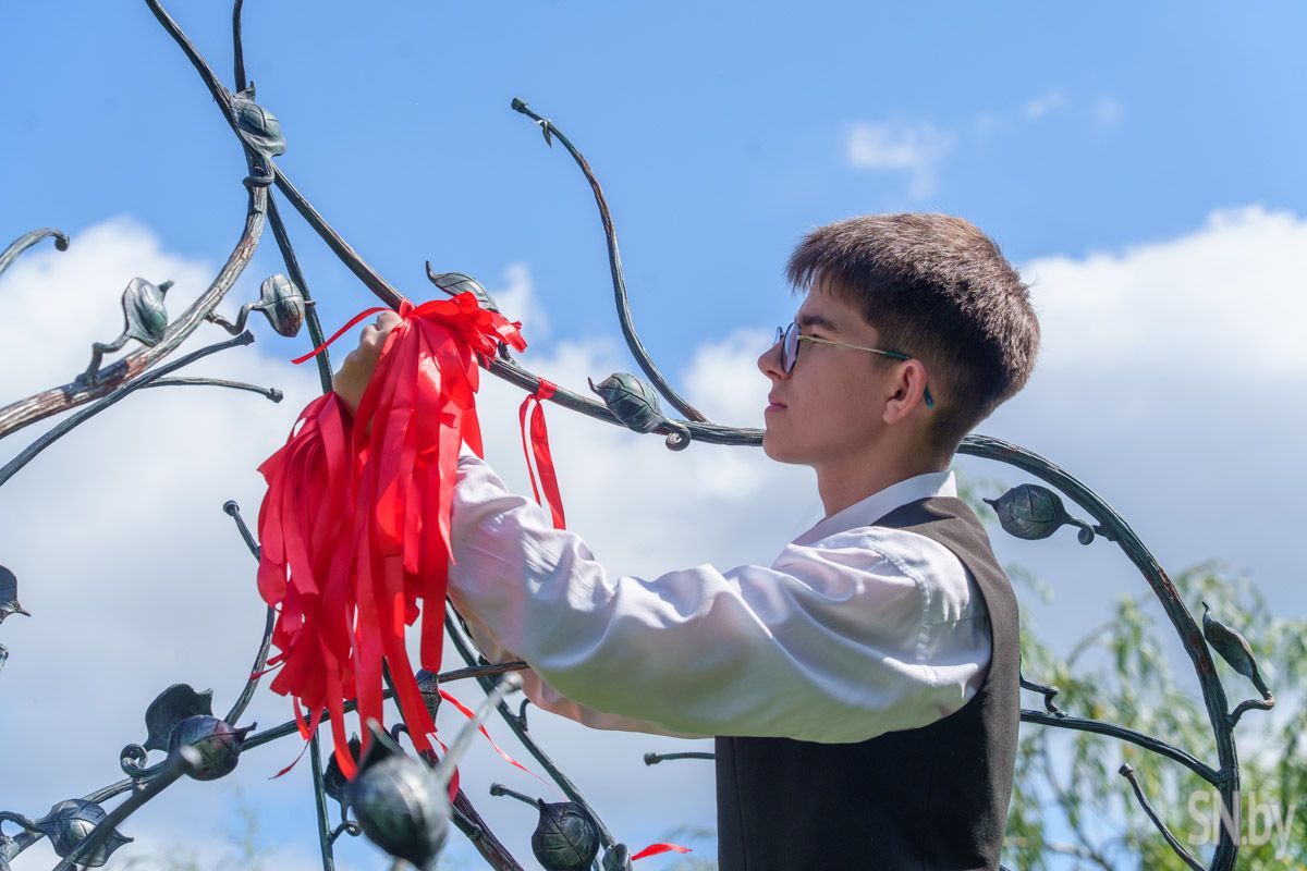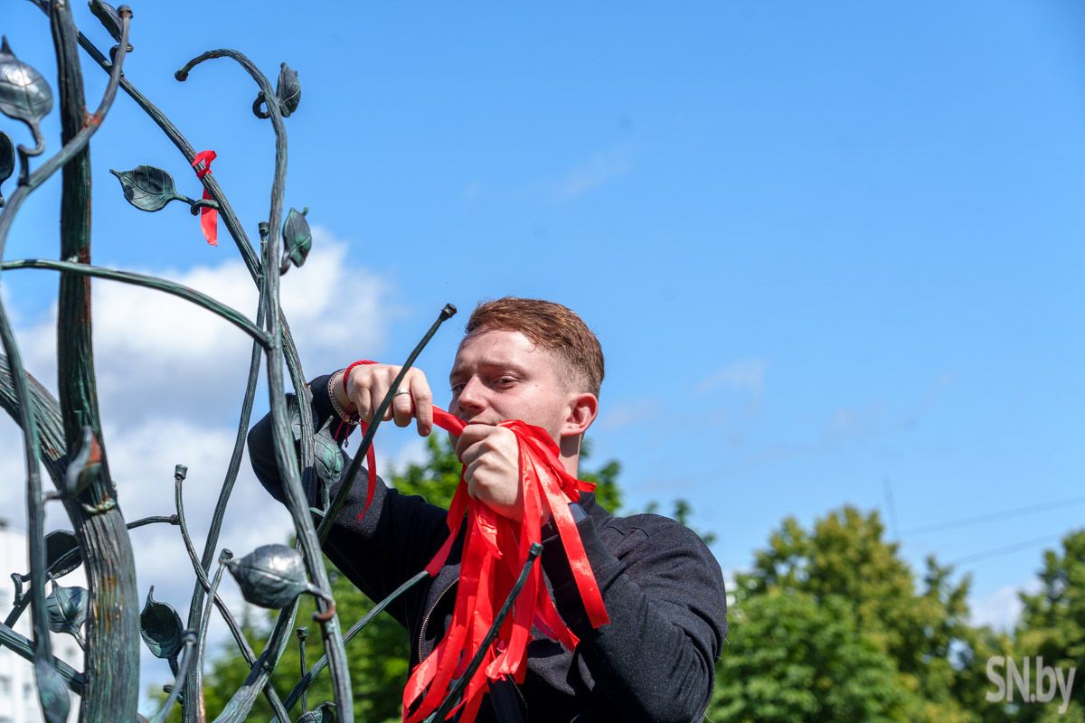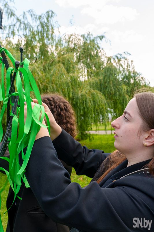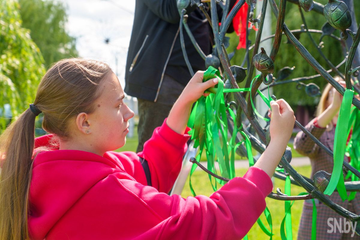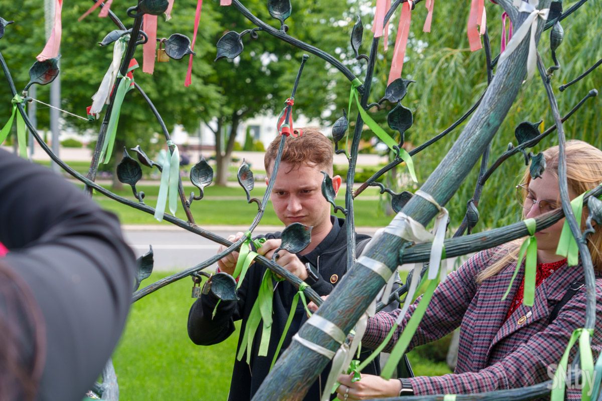 Члены Молодежного парламента обновили ленточки на одном из популярных символов Светлогорска: в такой праздничный день объединившаяся молодежь сменила ленты, создав гармоничную композицию с самыми важными цветами, которые характеризуют нашу Беларусь. Красные, зеленые и белые ленты украсили памятное место в центре города.