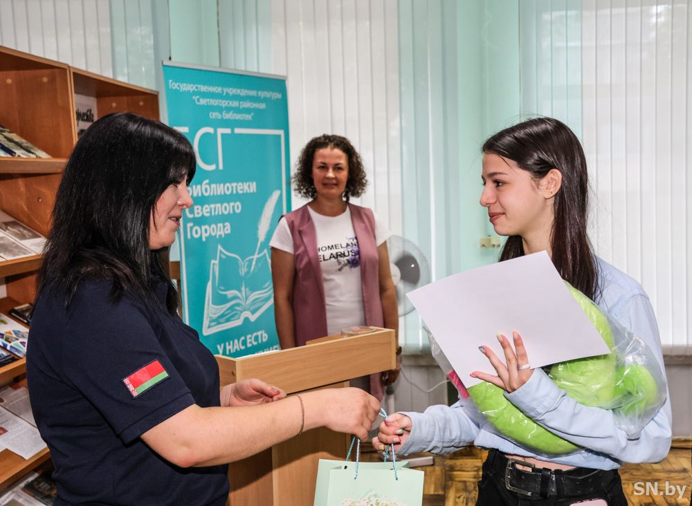 Сегодня в Центральной районной библиотеке состоялось награждение победителей и призеров конкурса. Поблагодарили ребят за хорошую работу и поздравили с успешными выступлениями главный специалист отдела образования райисполкома Наталья Шестакова, заместитель председателя комиссии по делам несовершеннолетних райисполкома Наталья Кендыш, старший инспектор ИДН Светлогорского РОВД Мария Шимборская, первый секретарь РК БРСМ Яна Нициевская и председатель районной организации ОО «Белая Русь» Виктория Бусел.