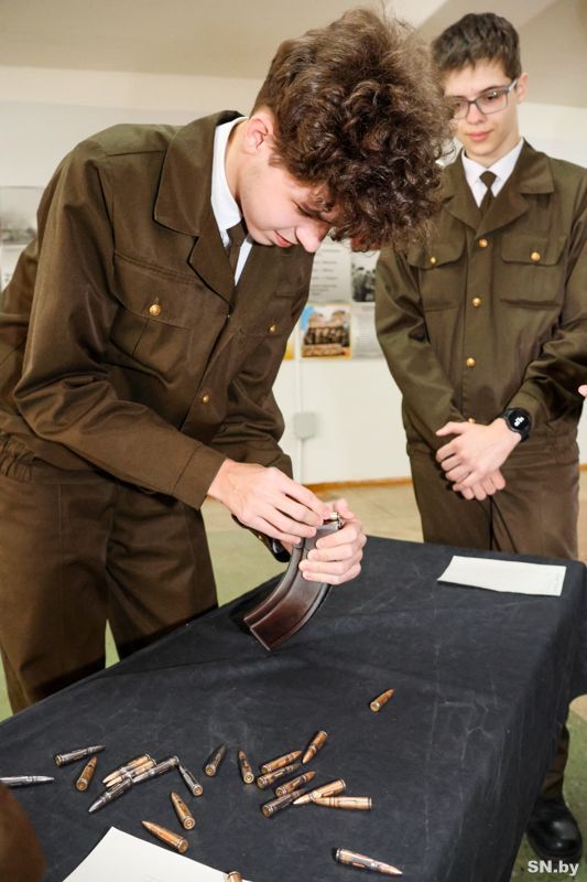 В СШ №11, Школе мира, юные патриоты приняли участие в серии испытаний, призванных подготовить их к будущей службе Отечеству. Старшеклассники, учащиеся профильных военно-патриотических классов, были приглашены к выполнению заданий, максимально имитирующих армейскую действительность. Перед командами «Патриоты» и «Звезда» стояла задача в ограниченное время продемонстрировать навыки обращения с оружием: разобрать и собрать автомат Калашникова, снарядить магазин патронами, правильно надеть противогаз и определить координаты на карте. Особое внимание уделялось точности и скорости выполнения. Стоит отметить, что ребята подошли к подготовке с должной серьезностью. Несмотря на игровой характер состязаний, полученные навыки, несомненно, окажутся полезными будущим защитникам Республики Беларусь.