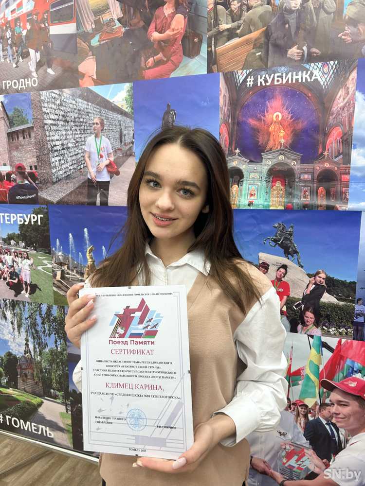 Учащаяся средней школы №10 Карина Климец завоевала это право, став финалистом областного этапа республиканского конкурса «Я патриот своей страны».