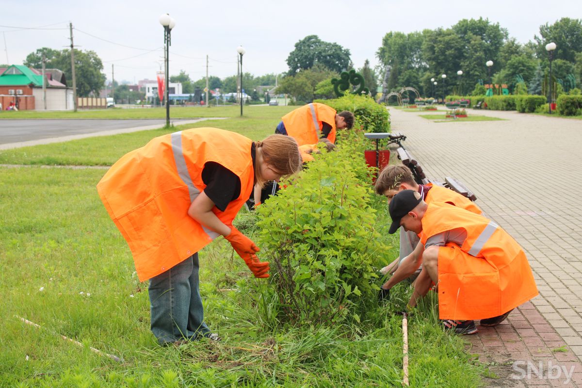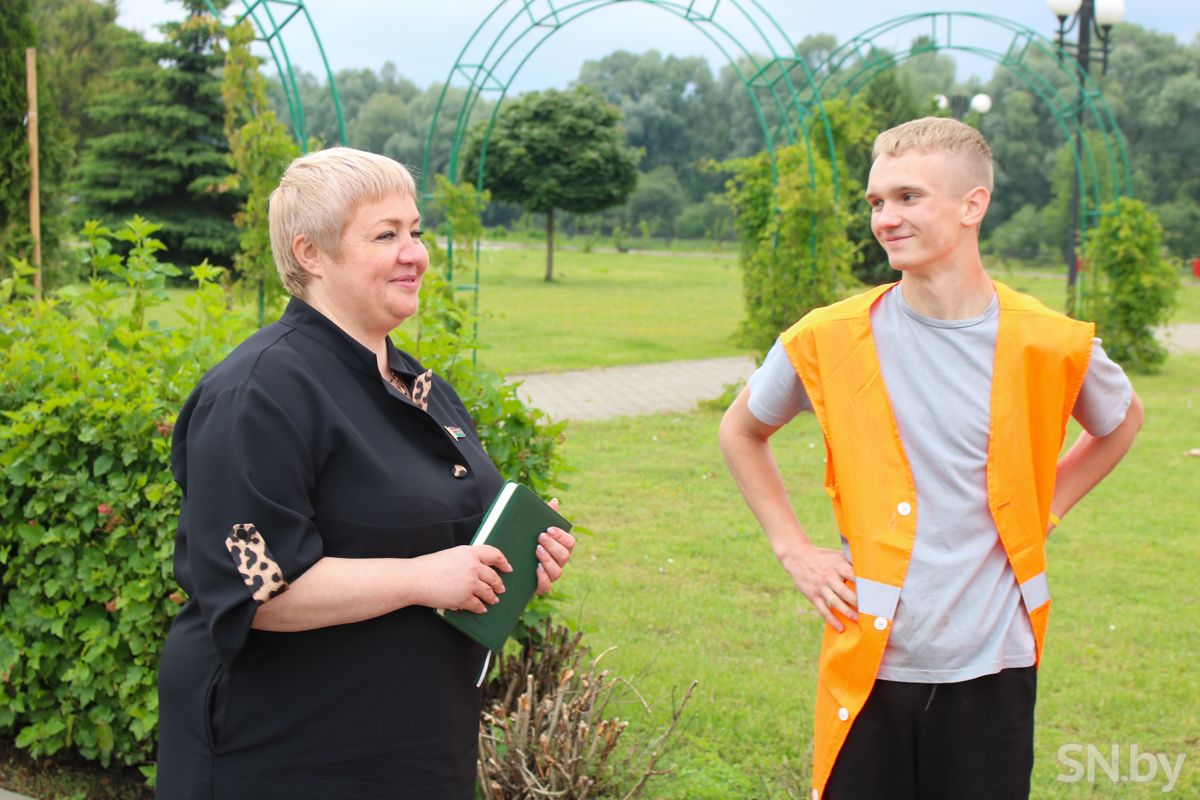 15 несовершеннолетних ребят – участники экологического студотряда –трудятся в цехе по благоустройству КЖУП «Светочь». Сегодня их место работы – на Набережной, где их встречает депутат Палаты представителей Национального собрания Республики Беларусь Елена Лаптева. Трудовой десант уже в деле – ярко оранжевые жилетки заприметить издалека не так уж и сложно. Елена Евгеньевна рада встрече с молодыми людьми, интересуется у подрастающего поколения их настроением, первыми впечатлениями о работе и планами на лето.
