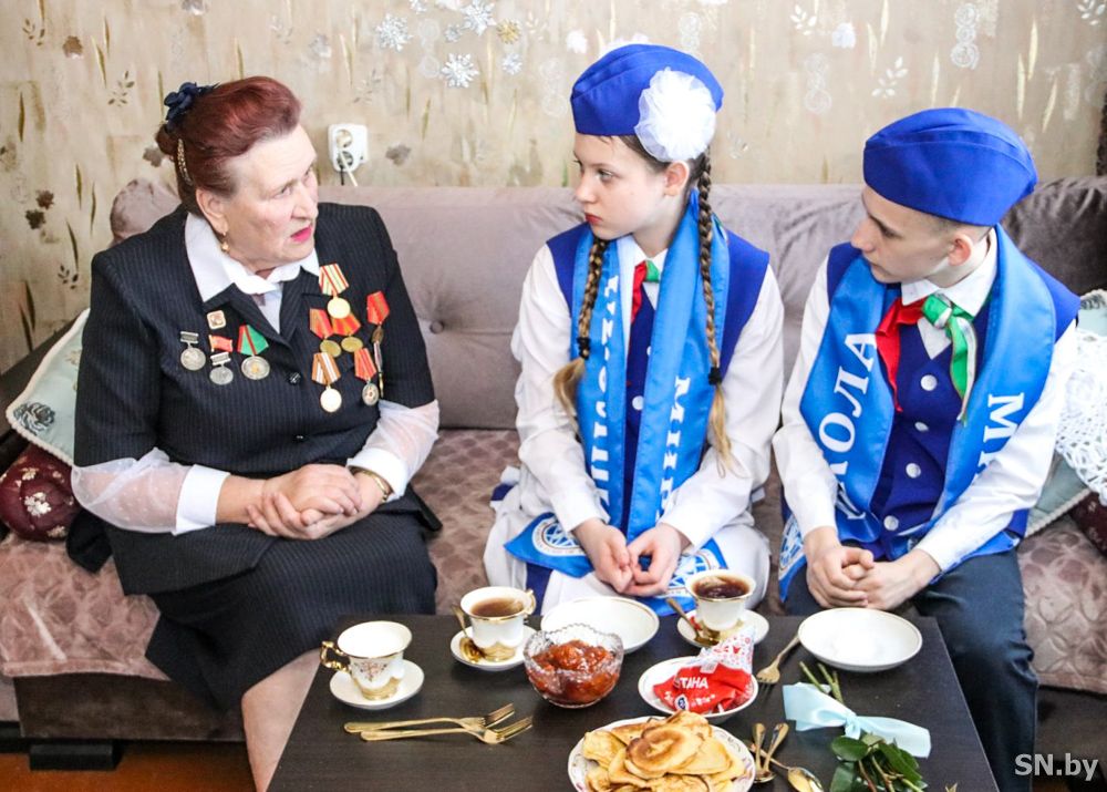 В Светлогорске к участию в проекте «Узники фашизма в Беларуси. Память: 1941-1945» присоединились юные миротворцы СШ №11 «Школа мира». Школьники посетили малолетних узников Нину Демидовну Медведеву и Надежду Ивановну Синкевич. Ветераны ответили на многочисленные вопросы детей, рассказали в подробностях о том, что пришлось пережить им и их родным в немецко-фашистских лагерях. Нине Демидовне не было и 10 лет, а она вместе с близкими и соседями прошла через лагерь смерти «Озаричи». Надежда Ивановна родилась в фашистском трудовом лагере, где несколько лет в невыносимых условиях находились ее родители и старшие сестры и брат. Рассказы ветеранов, подкрепленные фотографиями из семейных архивов, оставили неизгладимое впечатление на ребят. Учащиеся 7 «В» класса СШ №11 «Школа мира» Тимур Лыжак и Вероника Прибышеня подробно записали истории Нины Демидовны Медведевой и Надежды Ивановны Синкевич и передали информацию для публикации в интернет-портале. Тимур Лыжак отметил, что ему общение с ветеранами помогло по-новому взглянуть на историю нашего народа: