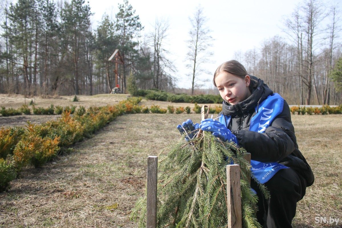 Волонтеры СШ №11 «Школа мира», юные миротворцы Маргарита Трубчик, Полина Манкевич и Илона Кудряшова вместе с педагогом-организатором Анной Русинович сегодня посетили мемориальный комплекс «Ола». Целью их визита стала забота о деревцах яблонь сорта «Ола», которые юные миротворцы вместе с представителями общественных организаций и трудовых коллективов в прошлом году высадили у поклонного креста комплекса, воплощая в реальности благородную идею сохранения памяти о сожженных селах Светлогорского района, высказанную почетным гражданином района Изяславом Григорьевичем Котляровым. 12 яблонь, по одной за каждую погибшую деревню, посадили тогда ребята и пообещали себе и людям, что продолжат заботу о саженцах, чтобы они росли крепкими, цветущими и воплощали собой торжество жизни и мира. Осенью школьники также не оставили без внимания живую композицию, надежно укрыв деревья еловыми лапками, защищая их от холода и грызунов.