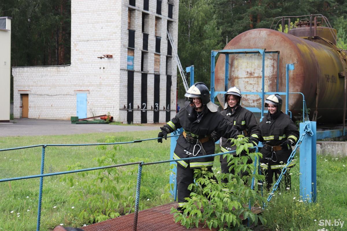 День, когда Диана Хоронжая, Валентина Лапич и Вероника Биницевич прибыли в ПАСЧ-1 г.Светлогорска, выдался жарким. В гараже, где стоят пожарные машины, нас ждали: форма аккуратно разложена на стеллаже. Старший инструктор-спасатель Алексей Рыбченко объяснил, как правильно надеть, снять и сложить снаряжение, чтобы потом затратить минимум времени на одевание.