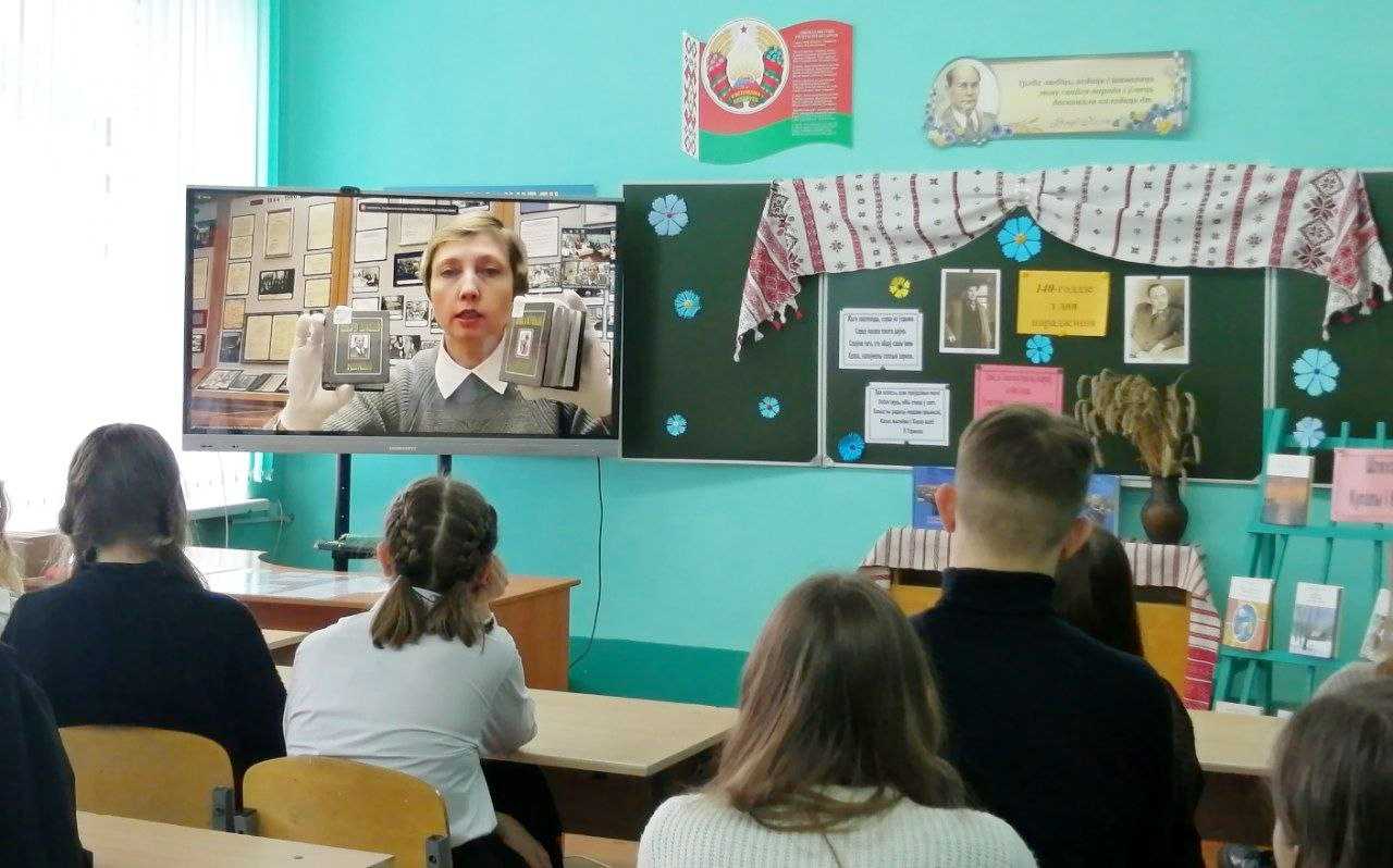 В этом году уже ставшая традиционной онлайн-встреча учащихся Боровиковской средней школы и Президентской библиотеки Республики Беларусь была приурочена к Году мира и созидания. Главными темами разговора стали любовь к Родине и пути, какие помогают реализоваться каждому гражданину как патриоту своей страны. Собеседником детей стала работник библиотеки Валентина Василевская. Она познакомила ребят с уникальными изданиями произведений классиков белорусской литературы Якуба Коласа и Янки Купалы, рассказала самобытную историю создания известных произведений, продемонстрировала экземпляры оригинальных и редких книг белорусских авторов.