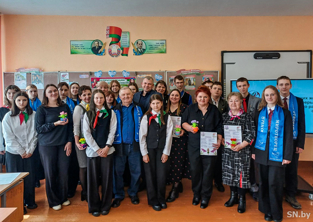 На мероприятие, единый урок, посвященный белорусской женщине, мы пригласили известных, почитаемых в деревне женщин, все они депутаты сельского и районного Совета: Людмила Федоровна Бусел, блогер, библиотекарь, краевед; Татьяна Ивановна Стукач, бывший директор школы, депутат сельского Совета депутатов; Раиса Анатольевна Полиненко, ветеран педагогического труда, учитель начальных классов; Елена Александровна Ранцева, председатель первичной профсоюзной организации филиала «Дубрава-агро» РУП «Гомельэнерго».