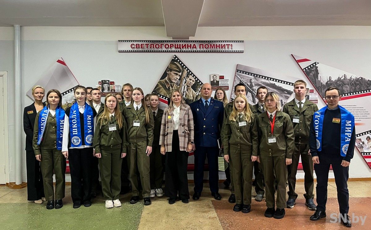 Юные миротворцы военно-патриотического класса познакомили гостя с музейной экспозицией «Светлогорщина помнит. Имена Победы». Экспозицию собирали не один год совместно с учениками и их родителями, а также поддержку оказали ветераны и гости школы. Экспонаты собрали по крупицам. В основном они хранились в семьях, ведь каждый на территории нашей республики имеет своего героя.