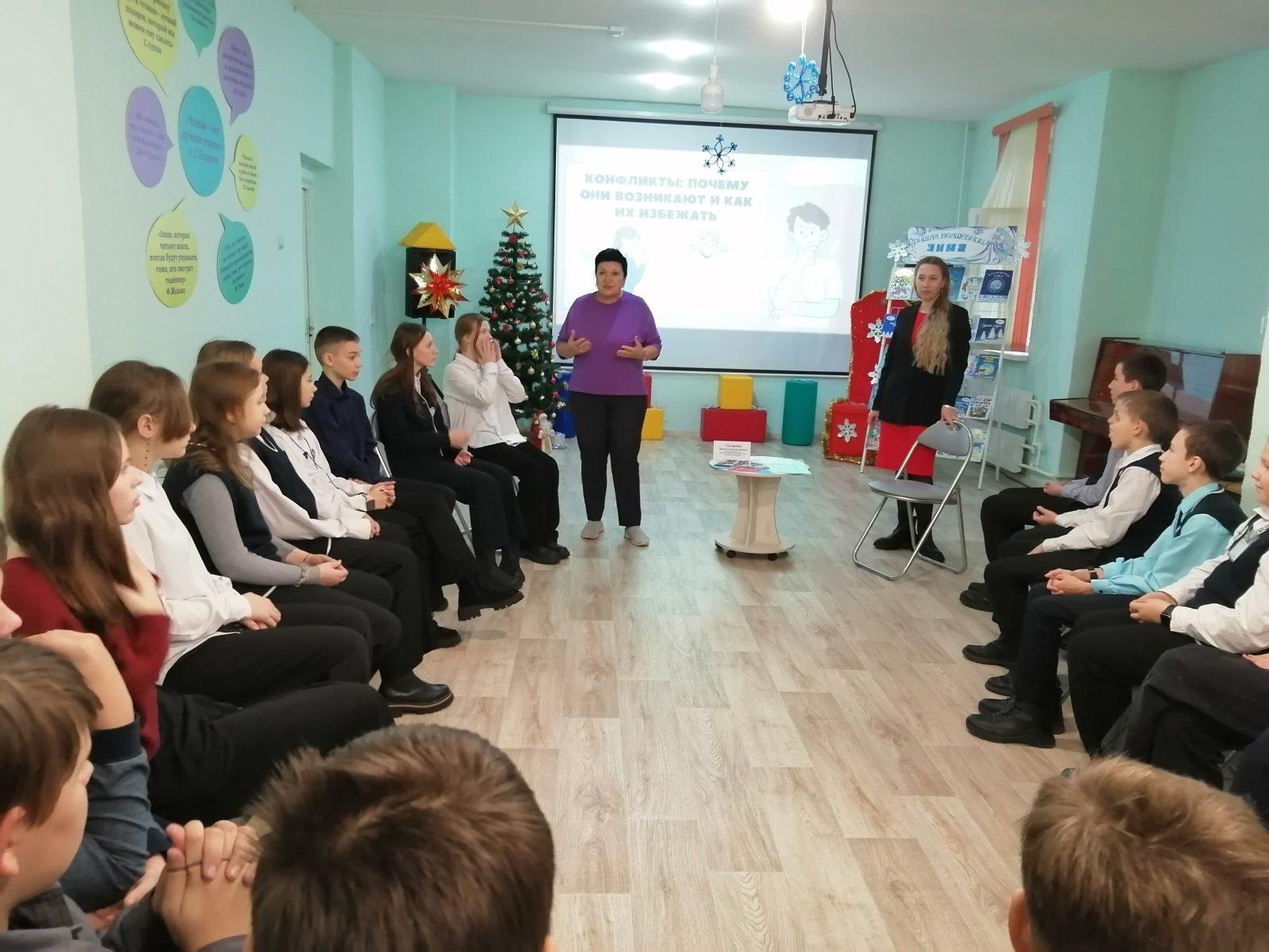 О том, почему возникают конфликты и как их избежать, узнали семиклассники средней школы №10, побывав на встрече с психологом в городской библиотеке №4. Школьникам была любопытна эта тема, и они с радостью выполнили упражнение с интересным названием «Праздничный пирог». Каждый участник решил для себя, как именно он разделит пирог: кому достанется лучший кусочек, кого первого он угостит и угостит ли вообще. Исходя из ответов, школьники узнали, какая стратегия в конфликтных ситуациях им ближе: конкуренция, избегание, сотрудничество, приспособление или компромисс.
