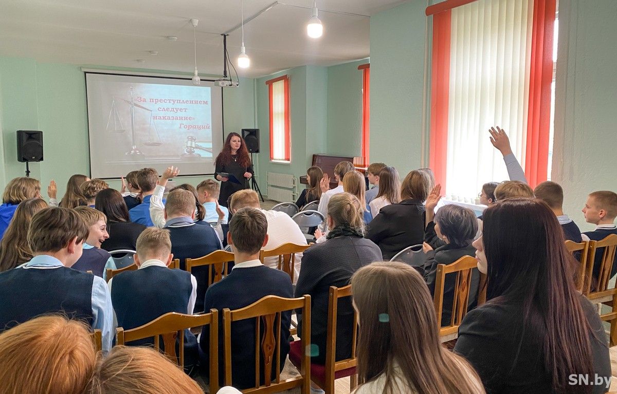 Ребята получили ответы на эти и многие другие вопросы, возникающие в ходе беседы. Мария Шимборская подробно рассказала, какие последствия у «прогулки по кривой дорожке»: постановка на учет, штрафы родителям, возмещение ущерба, а главное – запятнанная репутация. Одно неверное действие может навсегда оставить неосуществленной мечту поступить в Академию или Могилевский институт МВД, ведь для этого человек не должен быть ранее привлечен к ответственности. Старший инспектор также рассказала о случаях, когда несовершеннолетних вовлекали в распространение рекламы интернет-магазинов, продающих наркотические вещества. При этом сами подростки даже не знали, какое тяжкое преступление совершают, им предложили заработать на рекламе – они бездумно согласились. Но, как известно, «незнание закона не освобождает от ответственности».