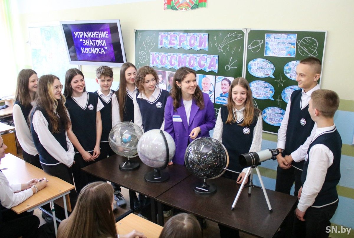 Сегодня во всех школах Светлогорска прошел единый урок, посвященный Международному дню полета человека в космос. В средней школе №10 им. С.Л.Краснопёрова в одном из классов учитель географии Ирина Щигельская очень ярко и подробно рассказала учащимся 7-го класса об основных этапах освоения космоса, о космодроме Байканур, с которого вот уже более 60-ти лет отправляются ракеты навстречу звездам, и, конечно же, о героях-космонавтах, уроженцах Беларуси. Ребята с интересом посмотрели фильм, который поведал о том, как первая белорусская женщина-космонавт Марина Василевская проходила предполетную подготовку, как она выполняла разработанную для нее научную программу полета, как ее встретили на земле по завершении полета. У детей было немало вопросов, главный из которых — «Как стать космонавтом?»