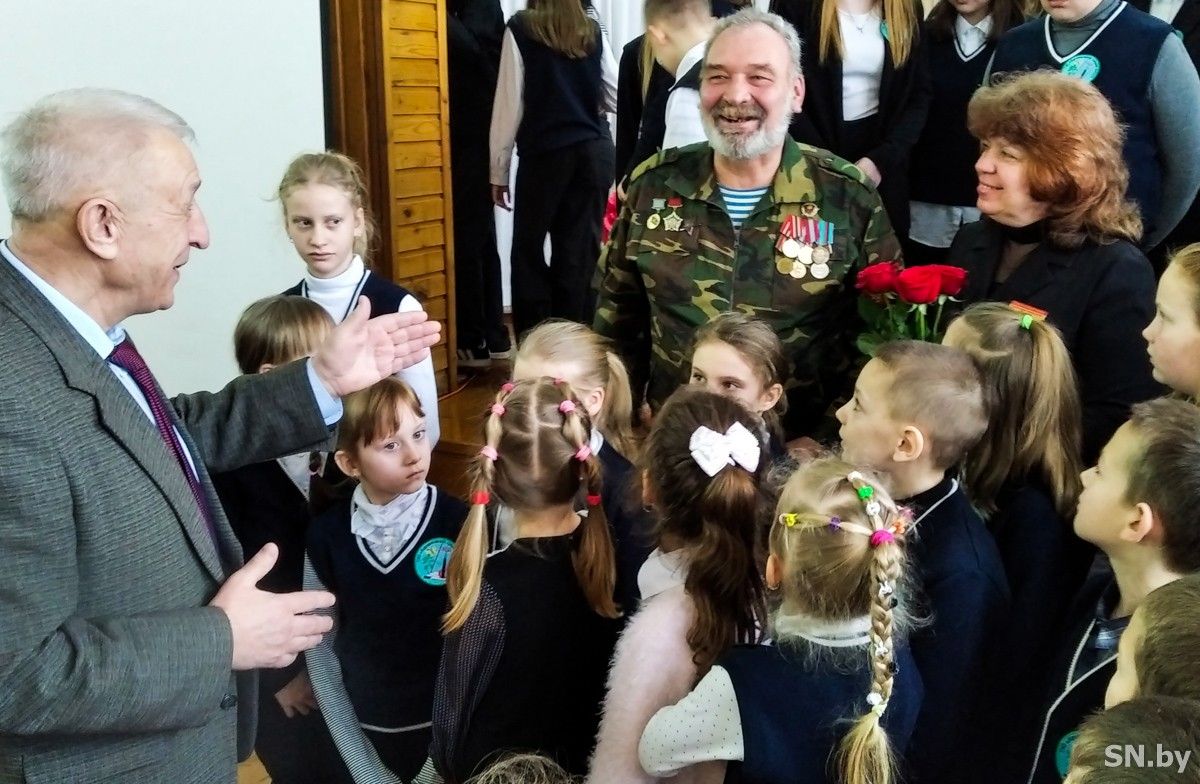 Воспоминаниями с учащимися поделился и участник войны в Афганистане Сергей Алисейко. Сергей Ильич иногда прерывался, не в силах сдержать чувства. И учащиеся, и учителя слушали его, затаив дыхание. Ведь он для них – увешанный боевыми наградами живой ветеран войны, воплощение мужества и справедливости.