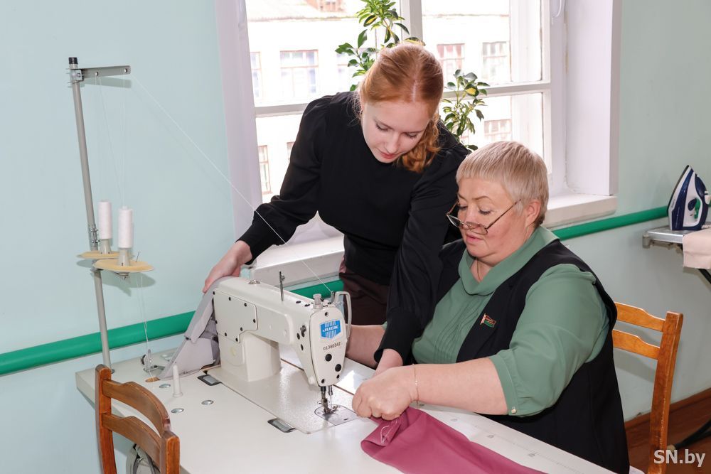 Елена Лаптева не смогла удержаться от возможности проверить, сохранились ли у нее полученные в УПК навыки: «Хотя основным направлением обучения у меня было поварское, девочкам преподавались также азы швейного мастерства». В классе, где в тот момент шли занятия у учениц 11-го класса, Елену Евгеньевну усадили за швейную машинку. Консультантом депутата стала учащаяся Кореневской средней школы Александра Волчек. Девочка второй год учится в УПК, хорошо знает предмет, говорит, что навыки швеи, даже если не станут ее профессией, все равно пригодятся в быту. Александра с ловкостью опытного специалиста помогла правильно заправить нитку в машинку, так что Елене Евгеньевне оставалось только аккуратно сделать строчку на предложенном отрезе ткани.