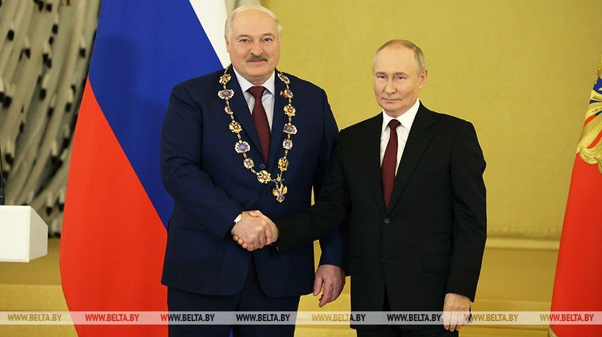Торжественная церемония награждения Президента Беларуси Александра Лукашенко высшей государственной наградой Российской Федерации — орденом Святого апостола Андрея Первозванного — состоялась в Кремле.