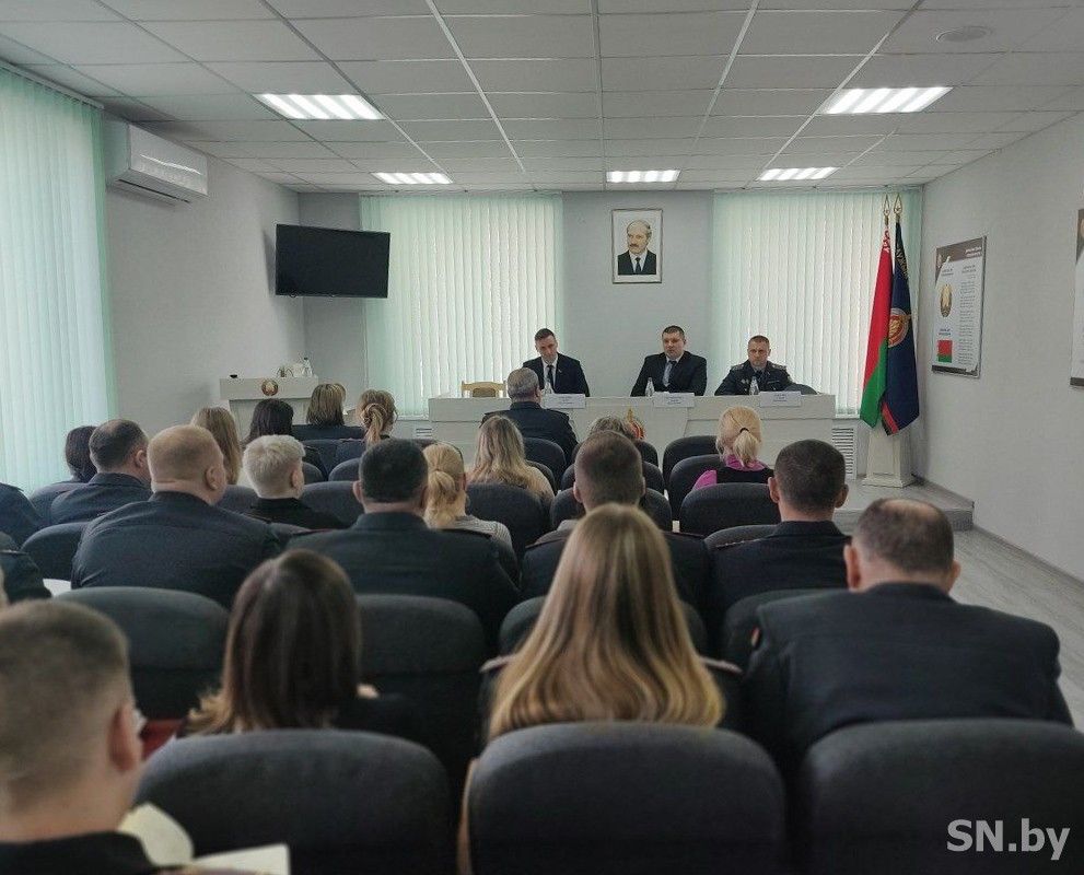 В рамках Единого дня информирования с сотрудниками ОВД Светлогорского райисполкома встретился начальник управления идеологической работы МВД Республики Беларусь подполковник милиции Антон Санкевич и заместитель начальника УВД полковник милиции Андрей Серафимович.