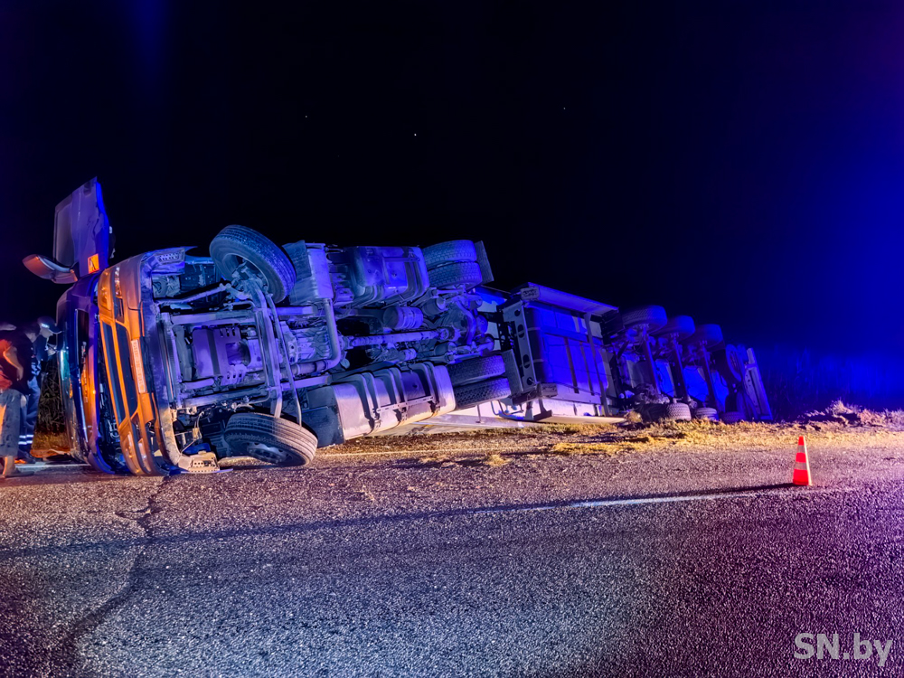 Ночью на 48 км автомобильной дороги Р-82 "Октябрьский — Паричи — Речица", между д. Прудок и д. Скалка Светлогорского района, опрокинулся грузовой автомобиль. Со слов водителя, он двигался со стороны д. Прудок в направлении д. Скалка со скоростью около 70 км/ч. Ему навстречу двигался легковой автомобиль, предположительно "ВАЗ-2109" серебристого цвета, который выехал на полосу встречного движения и вынудил водителя грузового автомобиля во избежание ДТП снизить скорость и изменить направление движения. После применения экстренного торможения полуприцеп стало заносить, водитель на справился с управлением и съехал в правый по ходу движения кювет, где опрокинулся. Предполагаемый виновник покинул место происшествия. Люди в аварии не пострадали. Сотрудниками ГАИ по факту ДТП проводится проверка. Если вам известна какая-либо информация о данном происшествии, просьба звонить по телефонам: +375 (44) 58-242-98, +375 (29) 608-42-92, 8 (02342) 4-55-92 или 102.