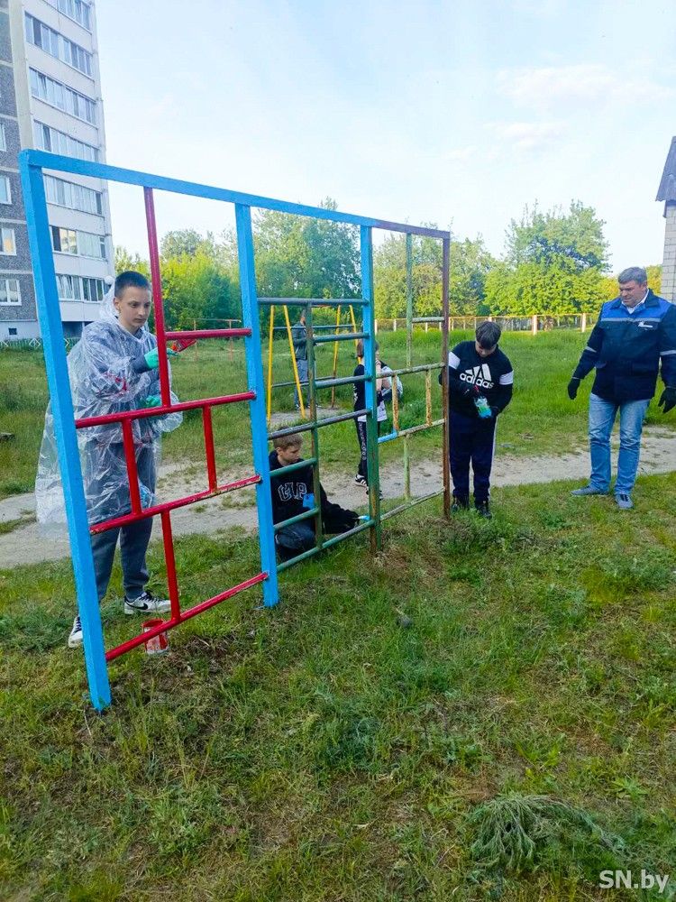 С приходом тепла и наступлением лета депутаты районного Совета депутатов не сидят на месте: надев перчатки, взяв в руки яркие краски и кисти, взрослые отправляются на детские площадки. Дружная команда наводит порядок во дворах. Именно так активно продолжается совместная с коммунальной службой акция «Сделай свой двор лучше». В этот раз работы проходили на детской площадке, расположенной в одном из дворов микрорайона Березина. Пусть за дело берутся и не профессионалы, но видя результат их работы, становится понятно, что сделать свой двор лучше, чище и красивее в силах каждого, было бы только желание.