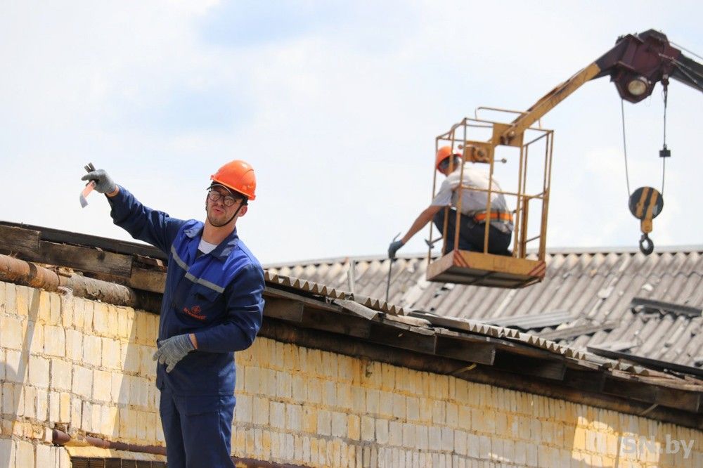 На ферме в д. Чкалово, которая принадлежит ОАО «Осташковичи», непогода разрушила часть кровли, что создает препятствие для нормального ухода за скотом и обеспечения полноценного производственного процесса. Специалисты ОАО «Светлогорский ЦКК» пришли на помощь сельчанам, оперативно устраняя недостатки. Спецтехникой для работы на высоте помог коллектив Светлогорской ТЭЦ РУП «Гомельэнерго».