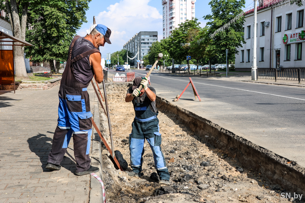 Работники КЖУП «Светочь» приступили к обустройству проезжей части остановочного пункта «Гостиница» по ул.Ленина. Теперь здесь будет бетонное покрытие.