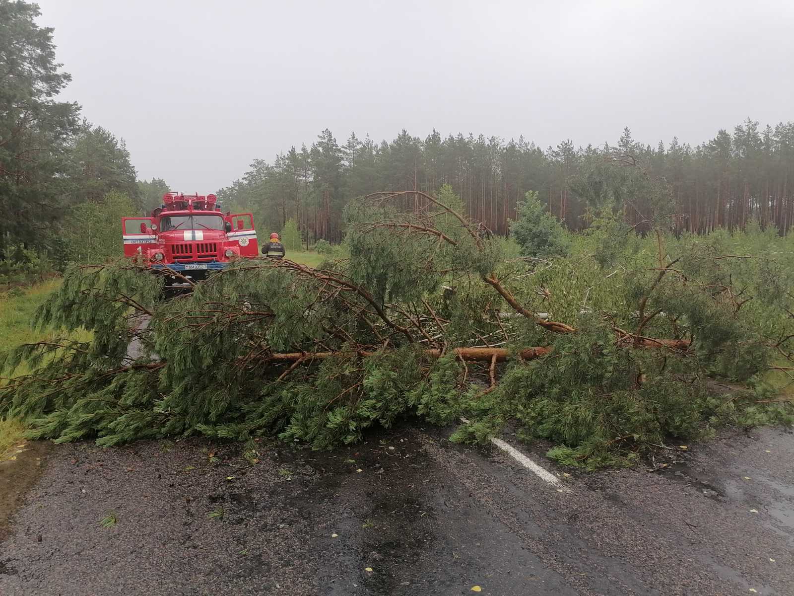 После жары, которая царила несколько дней, Светлогорск накрыла другая стихия: дожди, грозы, шквалистый ветер. Непогода натворила дел. Одно из ЧП – падение дерева на проезжую часть между Боровиками и Еланами, отчего проезд на данном участке был затруднен. Незамедлительно к месту происшествия была выслана специализированная техника Светлогорского районного отдела по ЧС (при помощи бензопилы деревья были распилены и убраны с проезжей части).