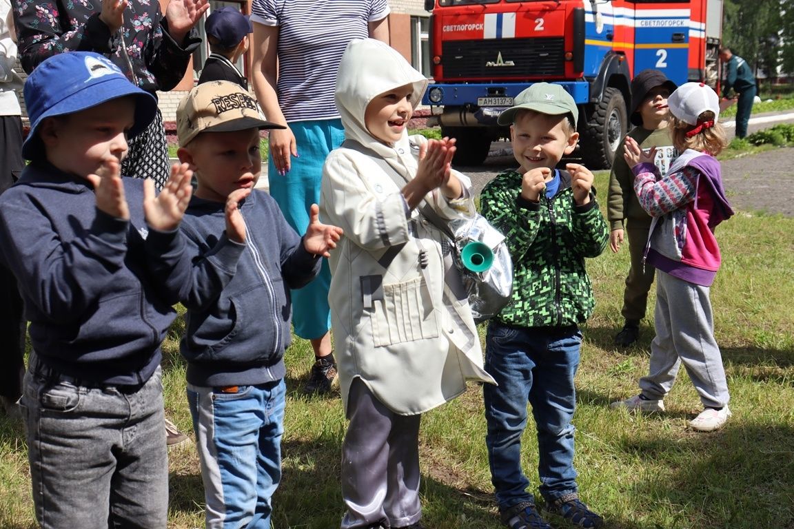Полезной стала встреча со старшим инспектором сектора пропаганды и взаимодействия с общественностью Светлогорского РОЧС Натальей Кашиной, которая напомнила ребятам о правилах пожарной безопасности, об опасности открытых окон и том, как вести себя у воды. Настоящим сюрпризом для детей стала возможность изучить пожарную машину: ребята на некоторое время превратились в настоящих пожарных (тушили пожар из рукава, сидели в машине и задавали много вопросов спасателям).
