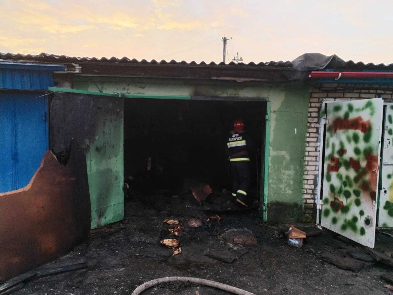 В результате ЧП повреждены вещи внутри и сама постройка, пострадало лакокрасочное покрытие автомобиля. Причина пожара устанавливается, рассматриваемая версия – нарушение правил эксплуатации электросетей и электрооборудования.