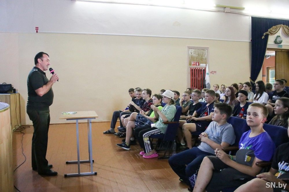 В оздоровительном лагере «Космос» в последнюю смену отдыхает более 60 ребят из Светлогорского, Мозырского, Калинковичского районов, в «Чайке» — порядка 100 светлогорцев. Возраст разный, от 6 и до 17 лет. Но интерес к профессии военного у детей откровенно высокий. Вопросы, прозвучавшие в адрес Павла Кибалко, были абсолютно разнообразные, от личных до узкопрофессиональных. Однако было заметно: если ребят помладше интересовало что-то личное, например, кто подсказал стать военным, какие фильмы нравится смотреть, какие праздники любимые, то подростков волнуют вопросы уже конкретной направленности: как поступить в военный вуз, какие есть специальности, с каким проходным баллом можно поступить на военную специальность и прочие. При этом желание стать офицером и посвятить свою жизнь служению Отечеству проявили не только мальчишки, но и многие девочки.