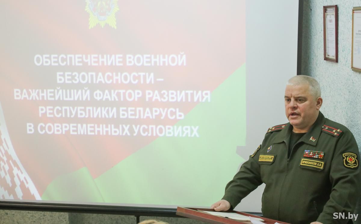 Андрей Владимирович подробно изложил основную концепцию безопасности, которая заложена в белорусской Конституции и обеспечена военной доктриной государства. Военный комиссар Гомельской области сказал, что «заложенные в Советском Союзе военные традиции мужества, преданности, нерушимого боевого братства продолжают определять облик современной белорусской армии»: