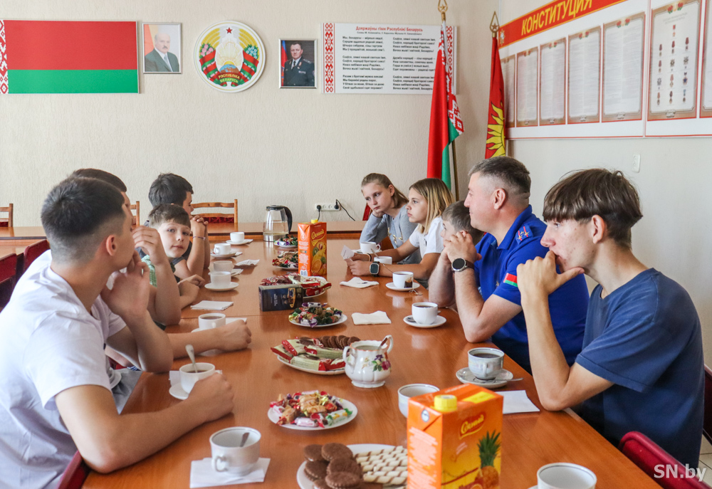 В завершение мероприятия гости собрались на чаепитии вместе с начальником Светлогорского РОЧС Игорем Антроповым. Воспитанники СПЦ задавали вопросы главному спасателю Светлогорщины и делились мечтами о том, что, когда вырастут, обязательно станут такими же отважными и смелыми.