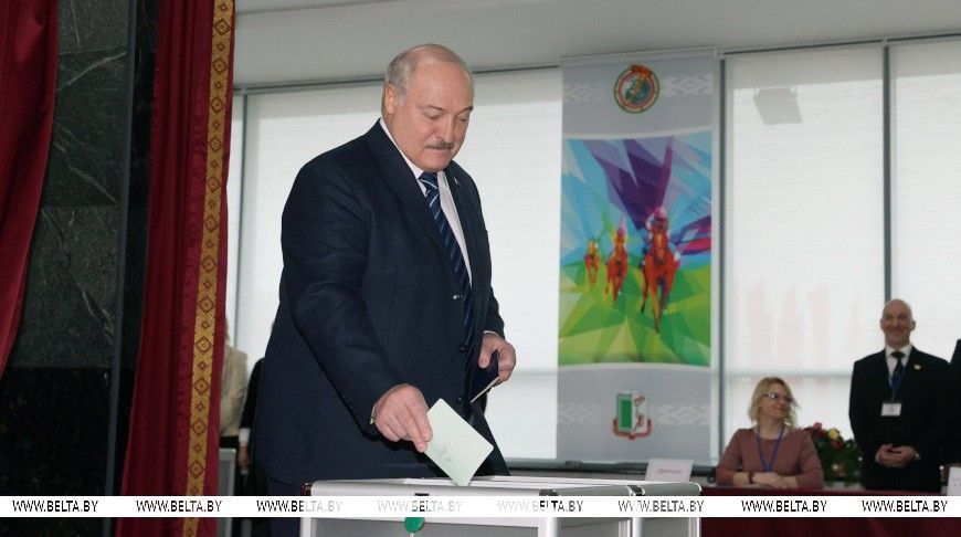 Глава государства традиционно принял участие в голосовании на избирательном участке, расположенном в Белорусском государственном университете физической культуры.