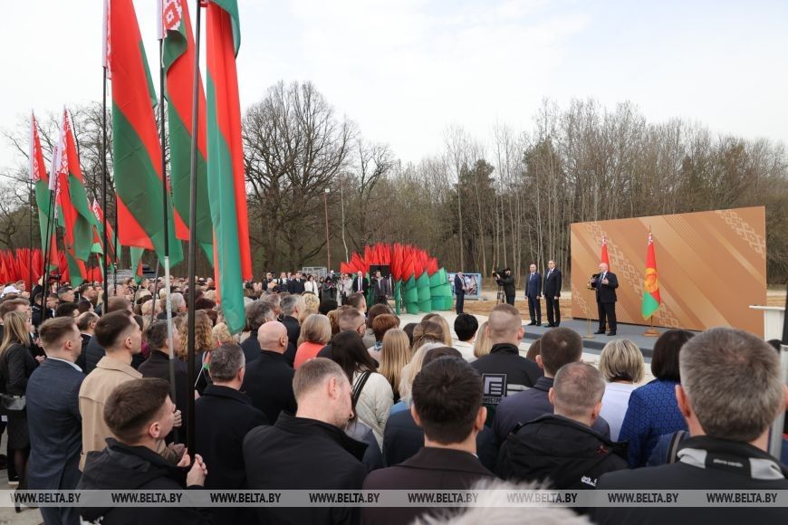 Александр Лукашенко заявил, что Беларусь хочет построить свое мирное будущее. Он обратил внимание, что это мероприятие можно расценивать как послание соседним с Беларусью странам. «Мы ведь сейчас тоже копаем землю, как и они, совсем рядом с границей. Только цели у нас совершенно разные. Там роют окопы, траншеи против танков и прочего, увеличивают расходы на ударные вооружения. А мы здесь две трети бюджета региона направляем на социальную сферу — здравоохранение, образование, культуру, спорт и так далее. Мы хотим построить свое мирное будущее. Мы настроены только на созидание», — подчеркнул Президент.