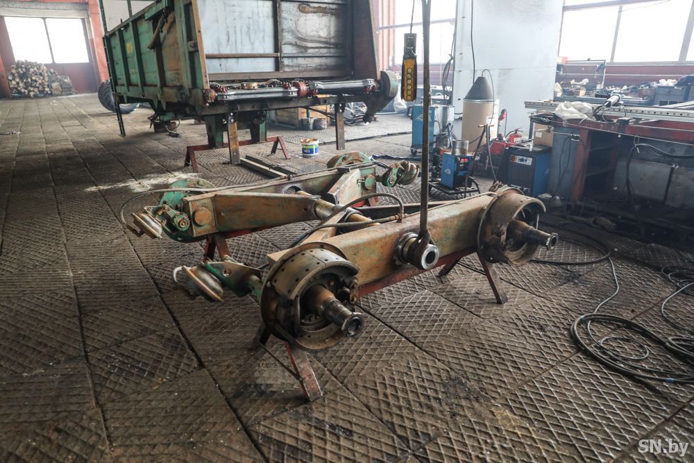 Мы увидели процесс производства кормораздатчика «Кормилец». Конкретно этот – одноосный прицеп для повышенной маневренности. В раздатчик для дальней транспортировки устанавливается балансирная тележка, которая существенно снижает угловые колебания, тем самым увеличивая долговечность и срок службы изделия. Ежегодно такой продукции продается в Российскую Федерацию на сто тысяч долларов в год. Это собственная разработка ОАО «Светлогорский агросервис» – сертифицированная продукция, которая востребована не только в Республике Беларусь, но и Российской Федерации.