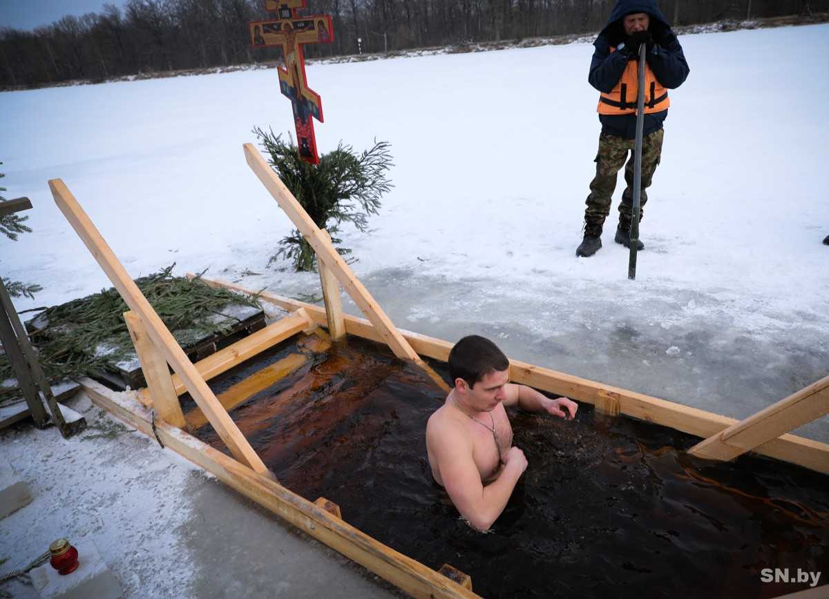 После этого горожане, возглавляемые духовенством, направились крестным ходом к Березине. Здесь в районе городского пляжа их ждала подготовленная крещенская купель для желающих окунуться в ледяную воду. А на берегу была организована палатка с жарко натопленной печкой и горячим чаем для обогрева. Рядом дежурили спасатели.