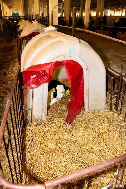 Особую заботу в «Михайловском-Агро» проявили в отношении новорожденных телят, которые по технологии до месячного возраста находятся в индивидуальных домиках. Как рассказал Дмитрий Логинов, домики разместили на свободном пространстве одного из сараев животноводческого комплекса.