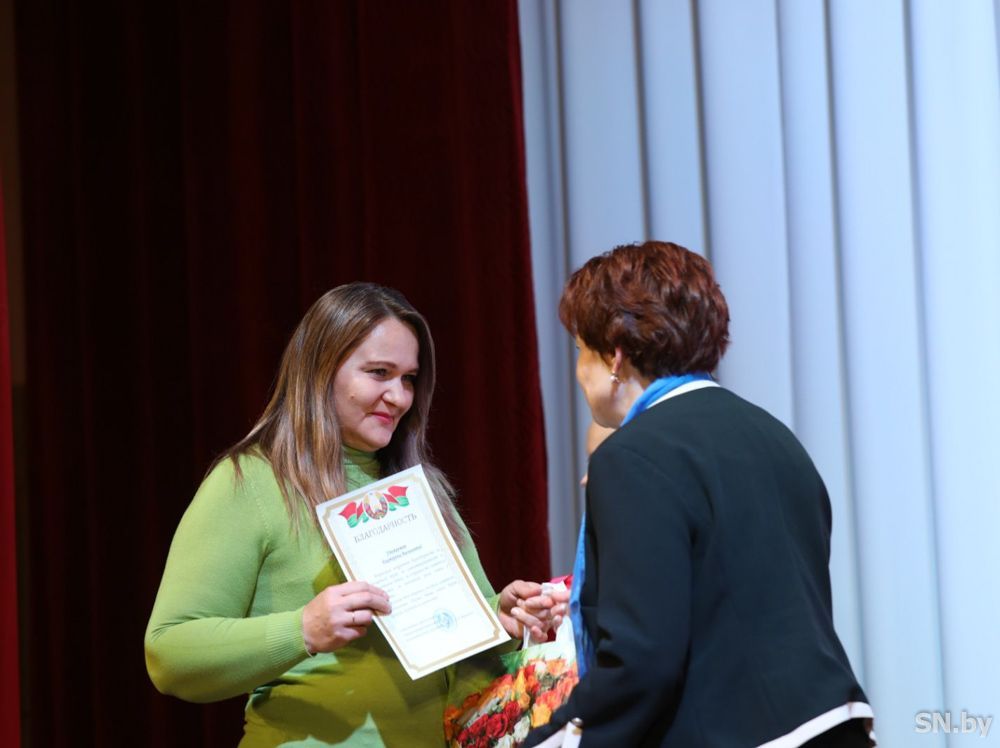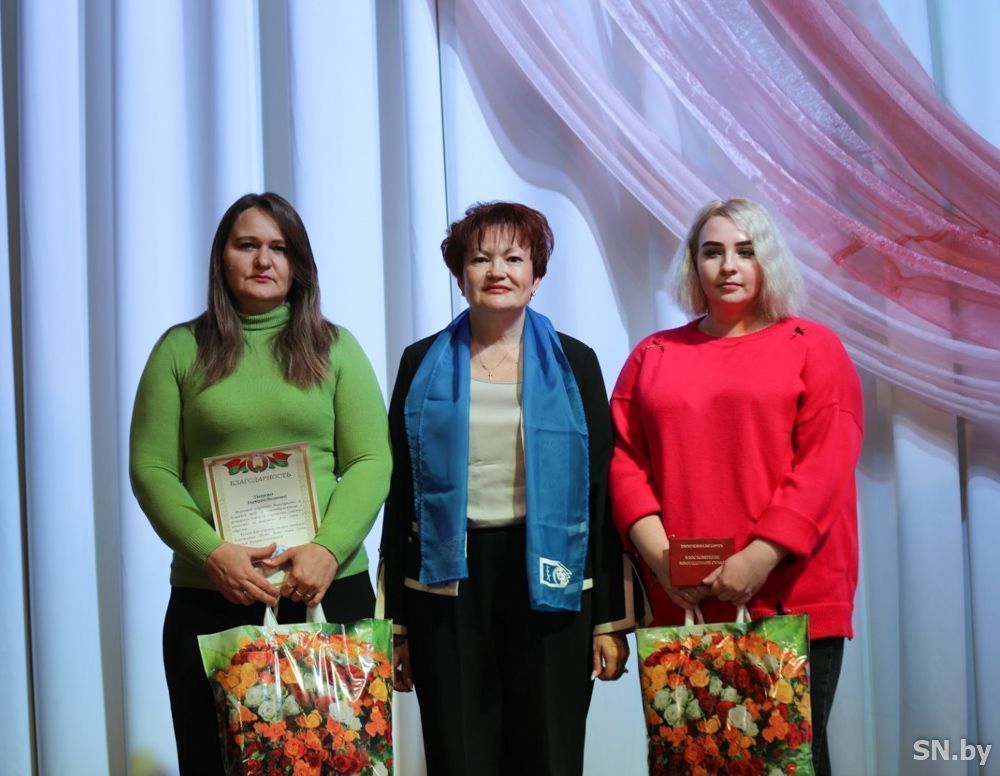После поздравительного слова Жанна Васильевна вручила удостоверение многодетной семьи маме троих дочерей Анастасии Полевицкой. А также Благодарственные письма Анне Пичик и Екатерине Дайнеко, которые воспитывают по семеро детей и обе награждены государственными наградами Республики Беларусь – орденами Матери.