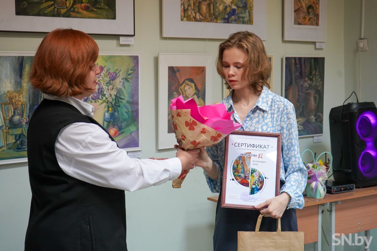 Педагог Марина Дайнеко стала инициатором выставки своих учениц – именно она предложила собрать 4 десятка лучших работ и пояснила, что с таким «запасом» дипломов различного уровня (в том числе и международного), творчества и креатива девушек это было сделать необходимо. И, действительно, рассматривая картины, очевидно, что девушки – очень разные по характеру, по восприятию мира, но обе нашли свой стиль, который надо дальше развивать и шлифовать. И Марина Сергеевна уверена в том, что все у них получится, благодаря трудолюбию и целеустремленности.