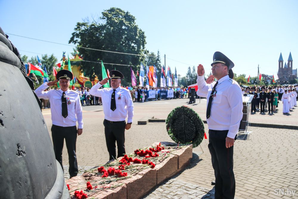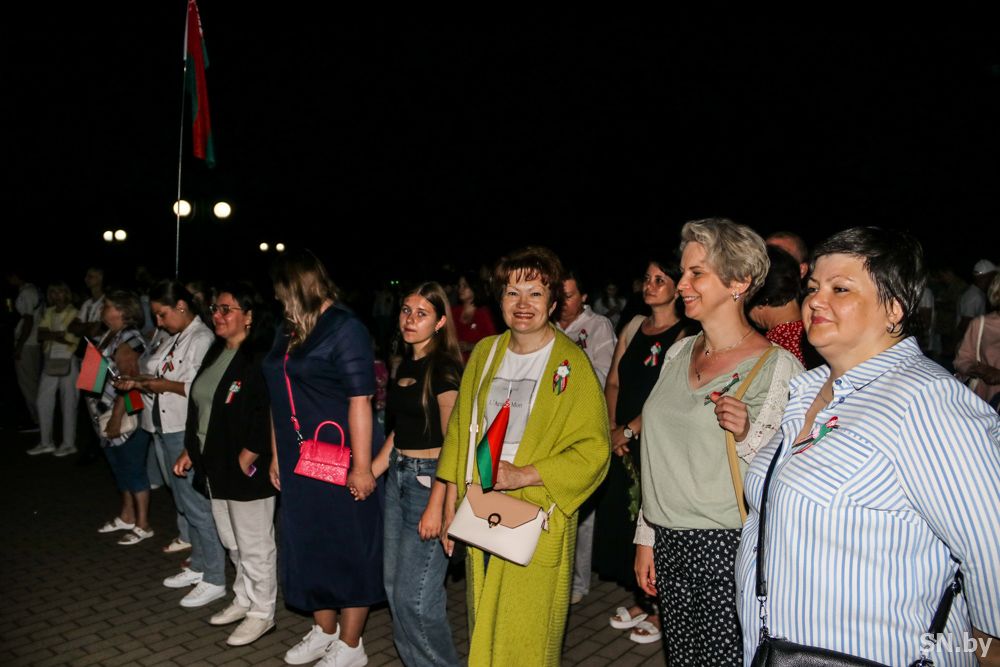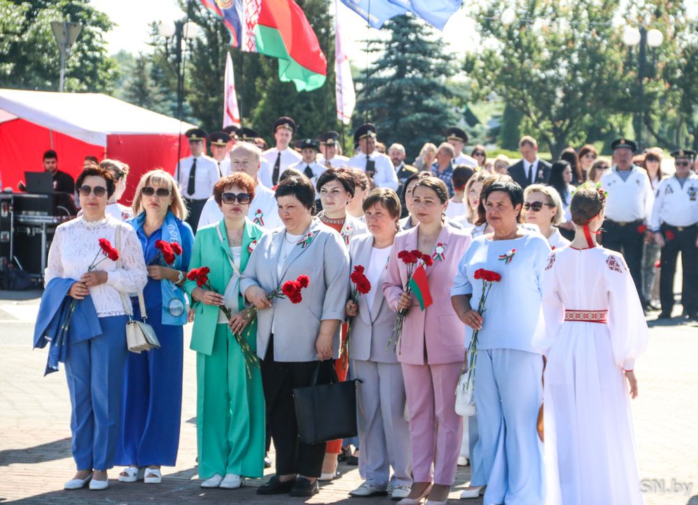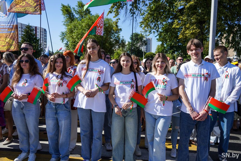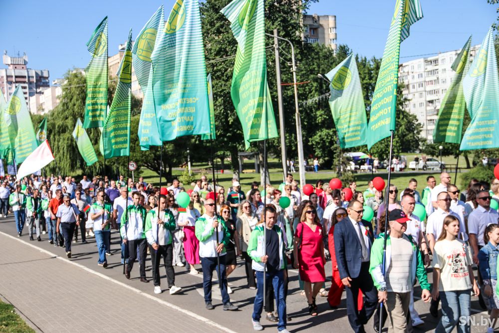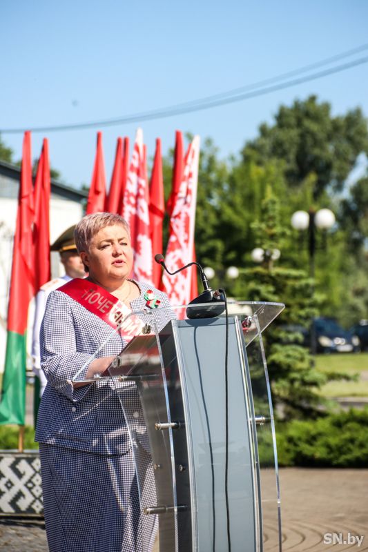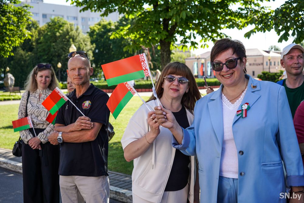 Мероприятия главного праздника страны в Светлогорске начались с традиционного праздничного шествия администрации Светлогорского района и почетных граждан, трудовых коллективов и общественных организаций. По центральной улице к монументу «Скорбящий колокол» прошагала и молодежь: особенную колонну видно издалека – светлогорцы приняли участие в районной акции «Пад сцягам з вышыванкай».