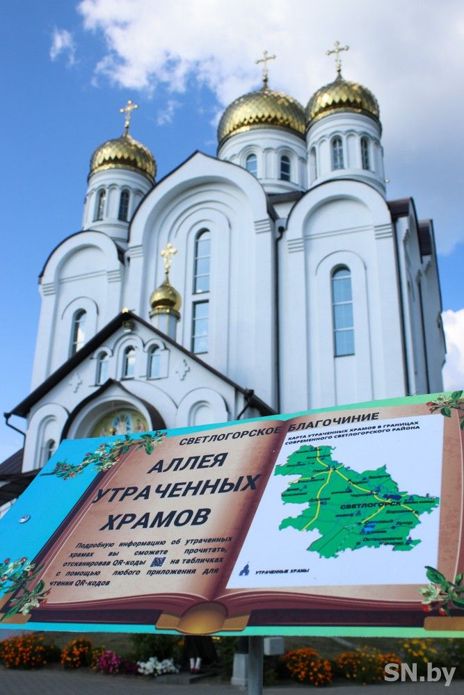 – Чтобы информация стала доступна для всех жителей Светлогорского района, участники проекта решили ею поделиться, – рассказала Алеся Летяго. – Ребятами были разработаны таблички, на которых размещена титульная информация о храме (его название и место его прежнего нахождения). Кроме, того каждая табличка снабжена QR-кодом, с помощью которого через приложение в смартфоне можно ознакомиться с доступной информацией об исчезнувшей святыне.