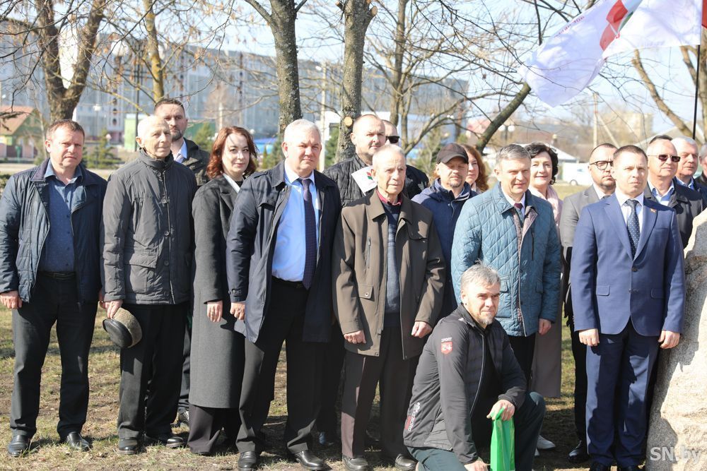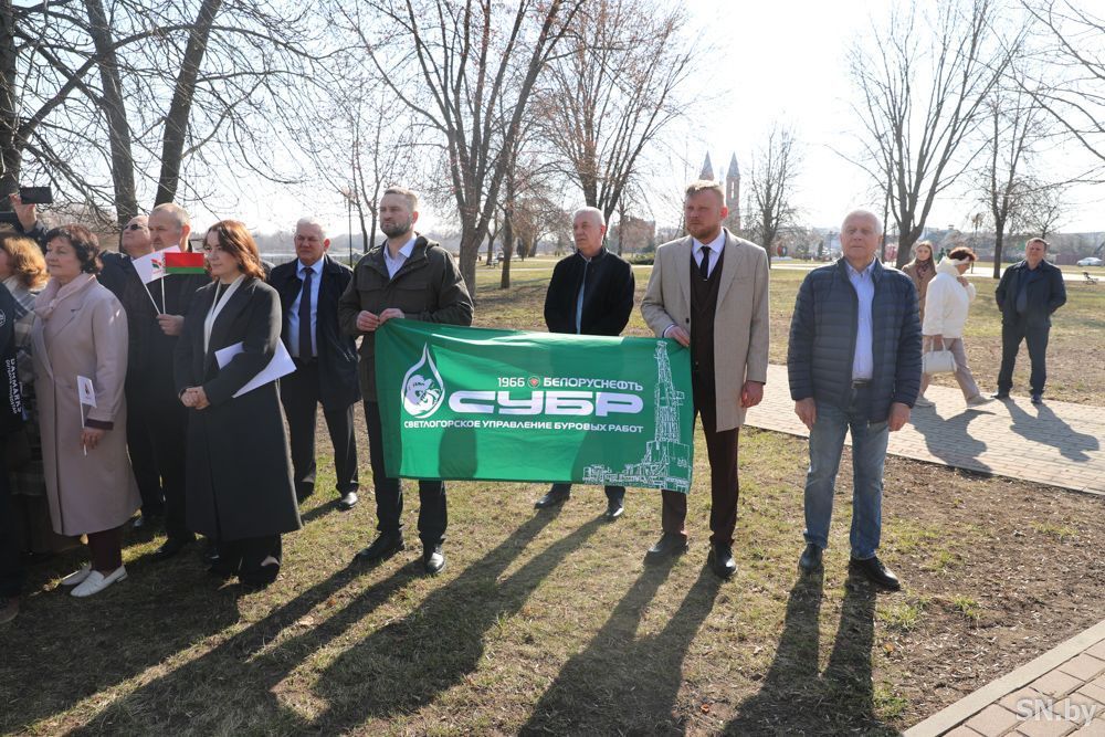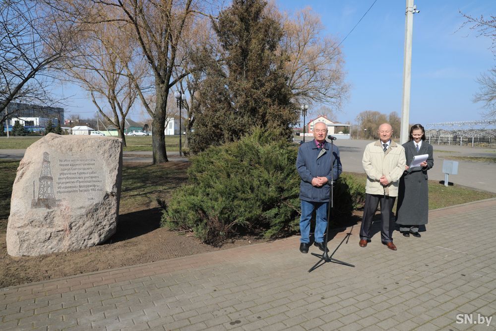 Поздравили светлогорских нефтяников заместитель председателя Гомельской областной организации РОО «Белая Русь», делегат Всебелорусского Народного Собрания Наталья Мамрукова, а также автор памятного знака – член Белорусского союза художников, скульптор Валерий Малахов.